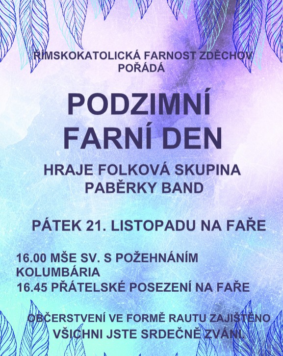 POZOR ZMĚNA!!! Tuto neděli 28.9. nebude ve Zděchově mše svatá.